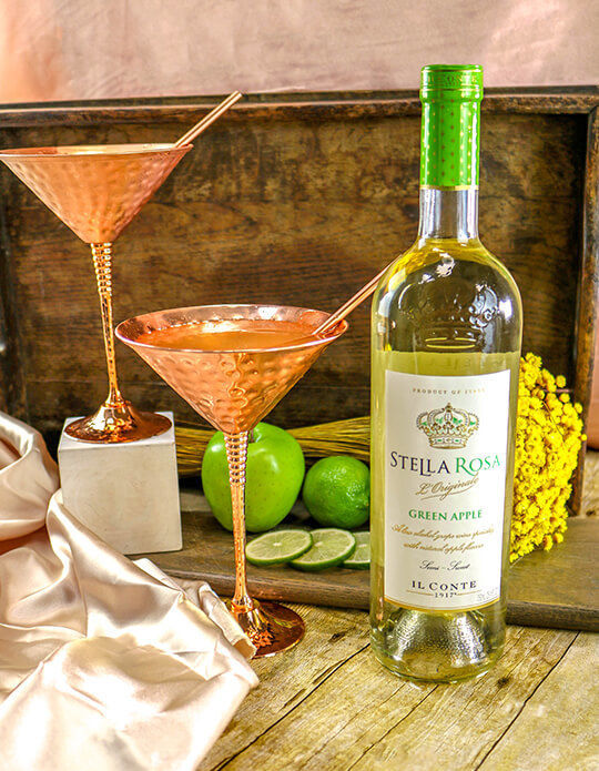- Combine vodka and ginger beer in a copper glass filled with ice. Add lime juice; stir gently. Top off with Stella Rosa Green Apple. Garnish with a lime slice and enjoy!